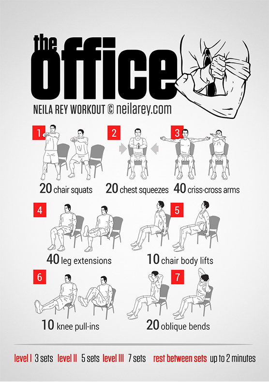 - Do exercises around the office: wall squats, stand-ups, and plank off your desk.